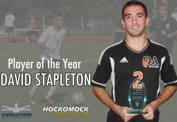 Oliver Ames senior David Stapleton has been named the second annual HockomockSports.com Boys Soccer Player of the Year. Stapleton was also voted Hockomock League MVP by the coaches and was named an All-New England player by the Eastern Massachusetts Soccer Coaches Association.