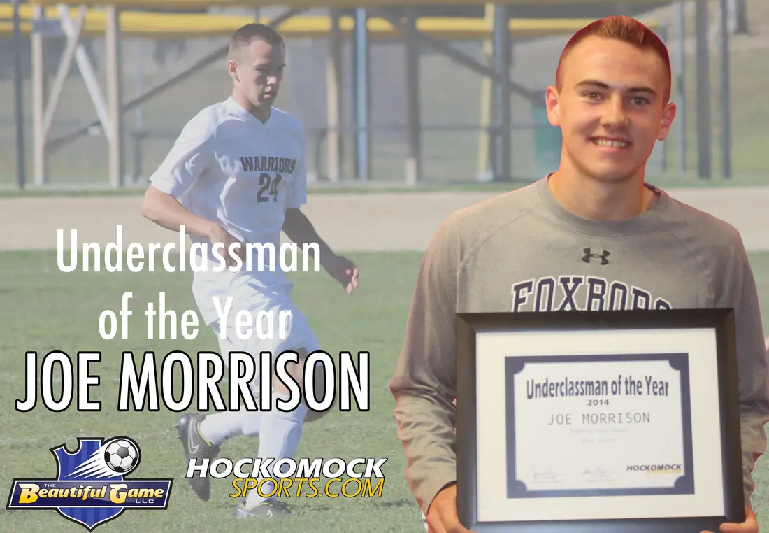 Foxboro freshman midfielder Joe Morrison has been named the third annual HockomockSports.com Boys Soccer Underclassman of the Year. This award is given out to the top freshman or sophomore player from the past season. Morrison burst onto the scene and helped Foxboro make a deep postseason run.