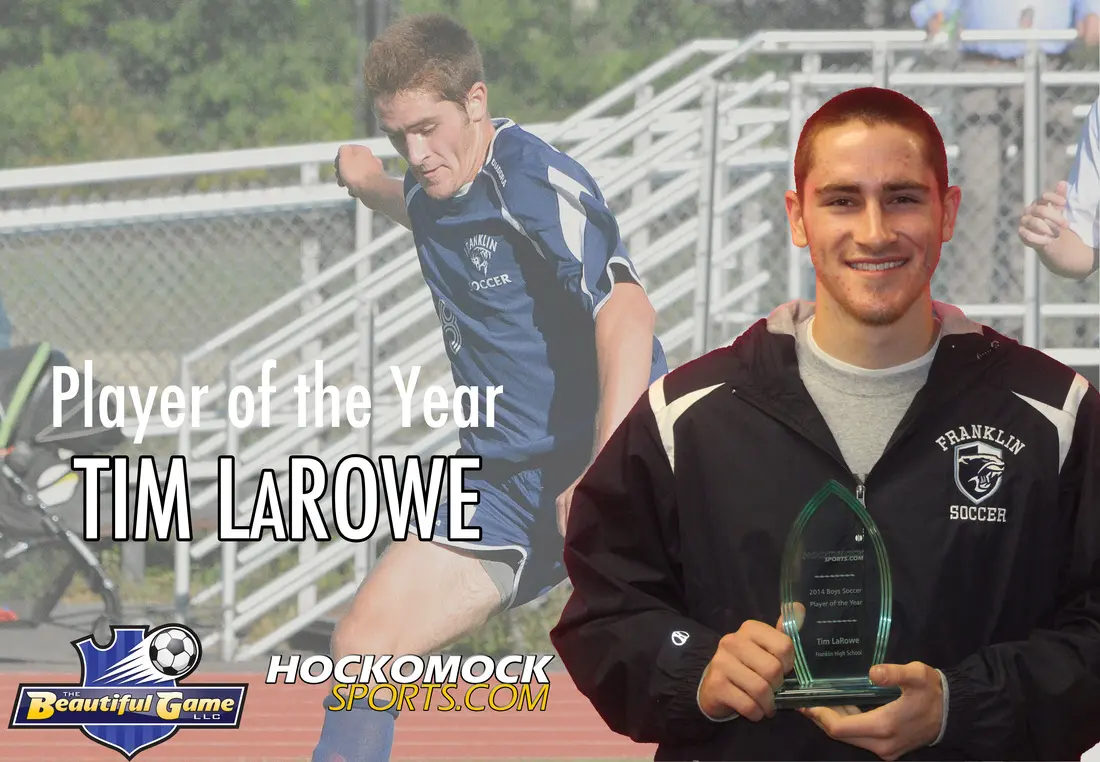 Franklin senior midfielder Tim LaRowe has been named the third annual HockomockSports.com Boys Soccer Player of the year. LaRowe was also selected as a Hockomock League All Star, EMass All Star and named an All-State player by the EMSCA.