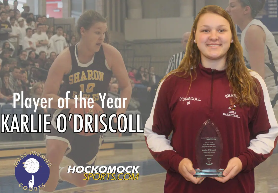 Sharon senior Karlie O’Driscoll has been named the HockomockSports.com Girls Basketball Player of the Year for the 2013-2014 season, the third season the award has been given. The Eagles captain also was named the Hockomock MVP by the league’s coaches after leading the Hock in scoring at 17 points per game. O’Driscoll also led the Eagles with eight rebounds, three assists, five steals and three blocks per game.