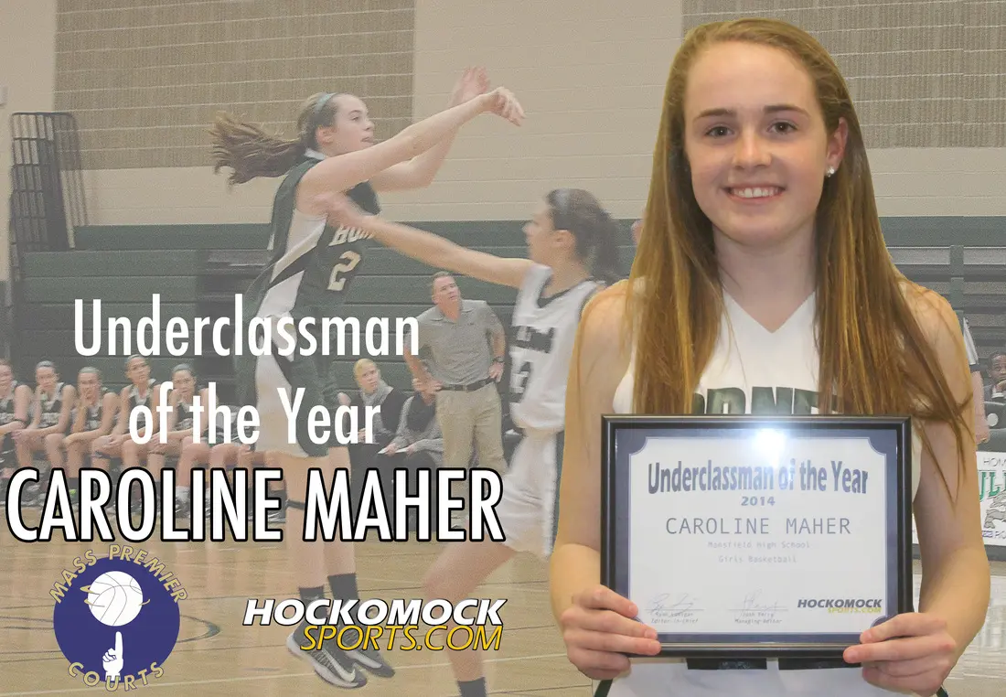 Mansfield sophomore Caroline Maher has been named the HockomockSports.com Girls Basketball Underclassman of the Year for the 2013-2014 season, the second season the award has been given to the top freshman or sophomore in the league. Maher becomes the first Kelley-Rex Division player to win the award.