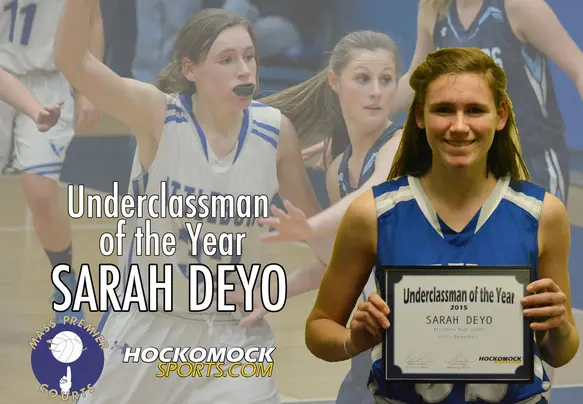 Attleboro sophomore Sarah Deyo has been named the 2015 HockomockSports.com Girls Basketball Underclassman of the Year, the third season that this award has been given to the top freshman or sophomore in the league. Deyo is the second straight Kelley-Rex Division player to win the award following Caroline Maher of Mansfield.