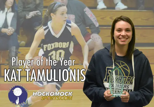 Foxboro senior Katherine Tamulionis has been named the 2015 HockomockSports.com Girls Basketball Player of the Year, the fourth player in the site’s history and first Warrior to earn this honor. The Foxboro captain was also named the Hockomock MVP by the league’s coaches after leading the Warriors to their first Davenport Division title and first league title since 2003.