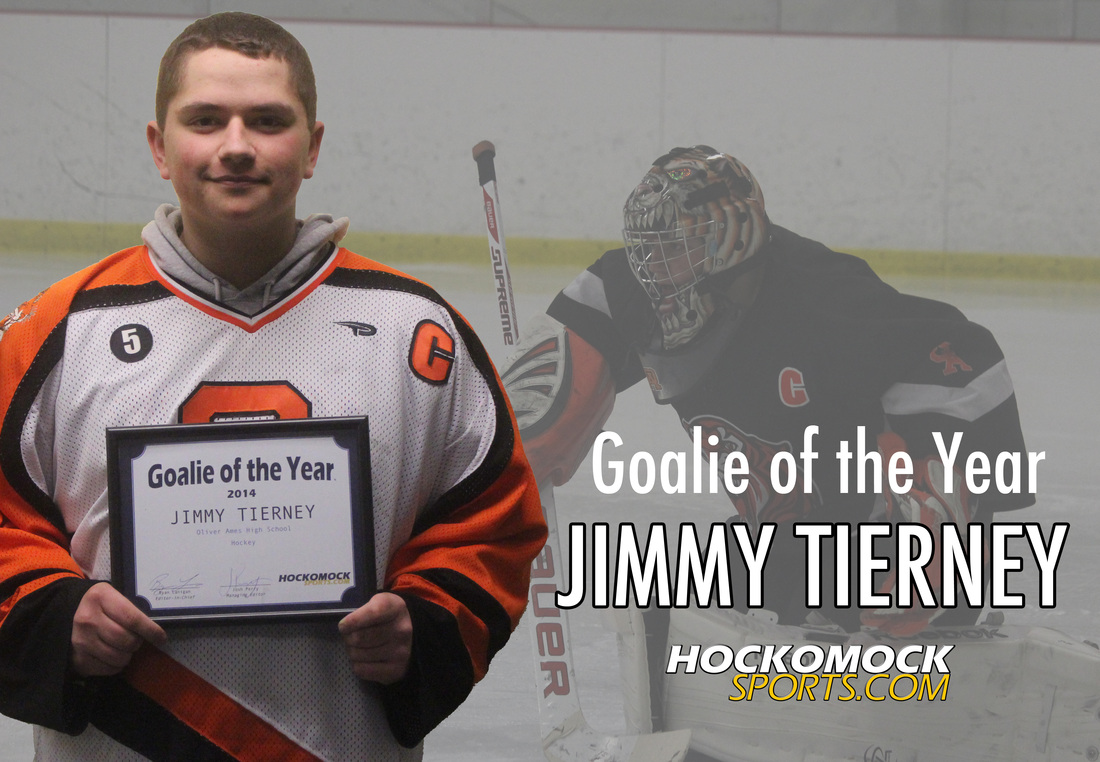Oliver Ames junior Jimmy Tierney has been named the HockomockSports.com Hockey Goalie of the Year for the 2013-2014 season, the second season the award has been given. Tierney was also named a Hockomock League All Star, as voted by the coaches.